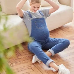 Salopette En Jean Coupe Mom Grossesse Et Allaitement Denim Brut – Vertbaudet