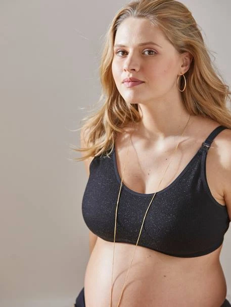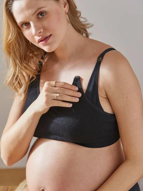 Brassière d’allaitement en maille 80% polyamide, 13% élasthanne, 7% fibres métallisées