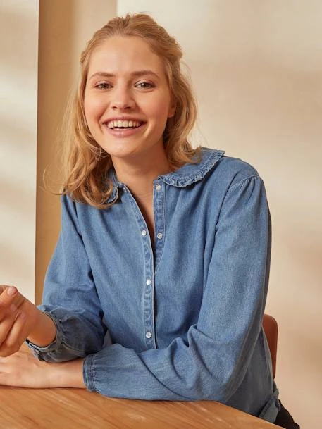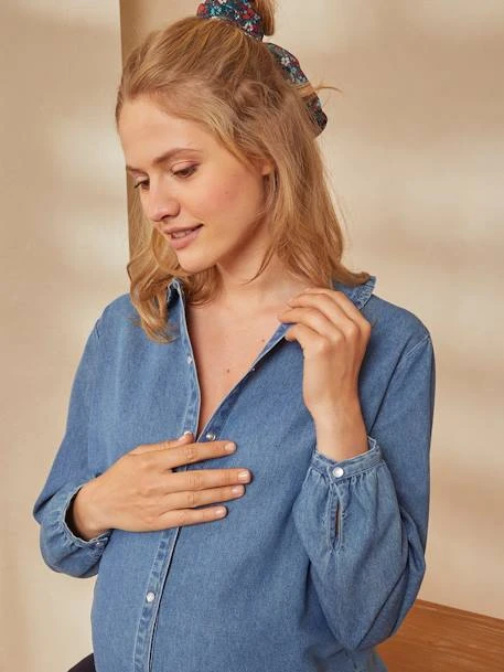 Chemise de grossesse et d’allaitement en denim pur coton