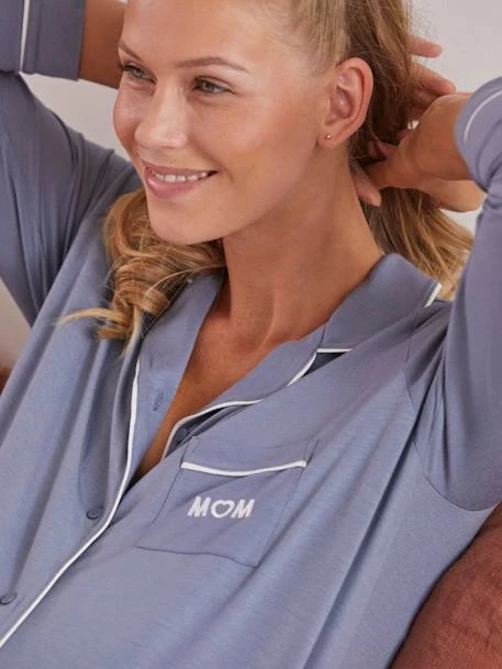 Chemise de nuit grossesse et allaitement en maille douce et extensible 96% coton, 4% élasthanne