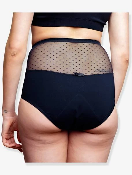 Imaginée pour accompagner les jeunes mamans à la sortie de la maternité, la culotte menstruelle post-partum Roma de Herloop convient aux flux très abondants. Cette culotte taille haute assure un bon maintien et gaine la taille sans compresser le ventre, ni gêner la cicatrice en cas de césarienne. On aime les détails féminins de cette culotte qui vous mettra en confiance au retour des règles après la grossesse.