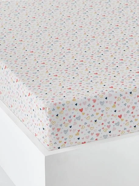 Drap-housse enfant COEURS EN FETE en pur coton de qualité, au tissage serré 57 fils/cm2