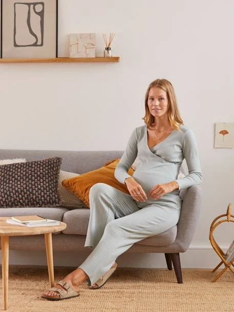 - Ensemble 2 pièces pyjama future maman en maille pointelle