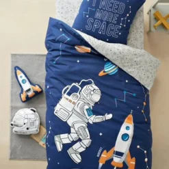 Drap-housse Enfant INTERGALACTIC Gris Clair Imprimé – Vertbaudet