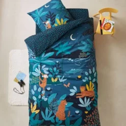 Drap-housse Enfant JUNGLE NIGHT Marine / Vert – Vertbaudet