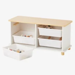 Meuble De Rangement + 4 Bacs LIGNE PTILOU Blanc/bois – Vertbaudet