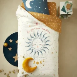 - Ensemble housse de couette + taie d’oreiller à compléter du drap-housse uni assorti vendu séparément sur notre site