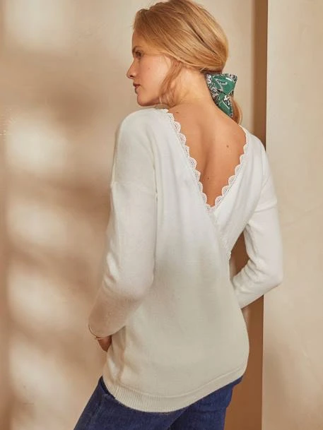 Une maille douce, une belle encolure cache-coeur à porter devant ou dos… Adepte du double jeu, le pull se porte facilement tout au long de la grossesse et vous accompagne aussi pour un allaitement en toute discrétion.