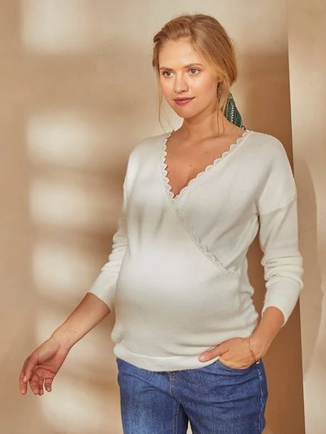 Pull de grossesse et d’allaitement en maille 72% acrylique, 25% polyamide, 3% élasthanne