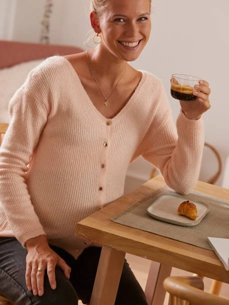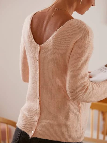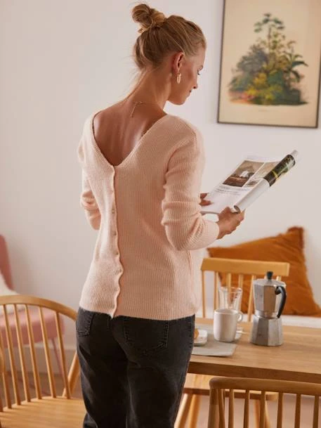 Pull de grossesse et d’allaitement en maille côtelée 47% polyester, 35% acrylique, 15% polyamide, 3% élasthanne
