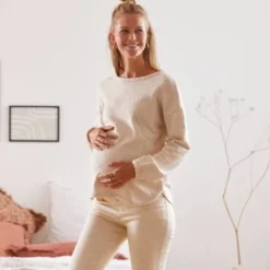 Soutien-gorge de grossesse et d’allaitement en maille extensible et dentelle 95% coton issu de l’agriculture biologique, 5% élasthanne