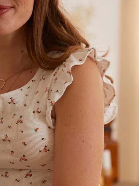T-shirt tunisien de grossesse et d’allaitement en maille côtelée 96% coton, 4% élasthanne
